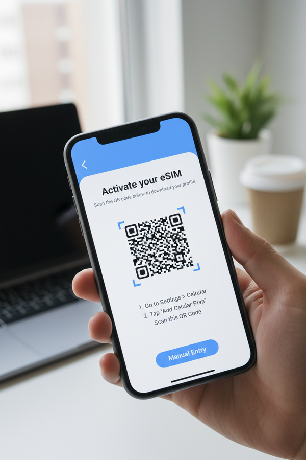 Activating your eSIM in is simple. After purchasing from eSIMForever, you'll receive a QR code via email. Go to your phone's settings, select 'Add eSIM' or 'Mobile Data,' and scan the QR code.