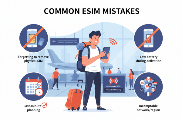 Avoid common eSIM mistakes that can cause activation failures and no internet issues. Discover the key things to check before buying and using an eSIM for travel.